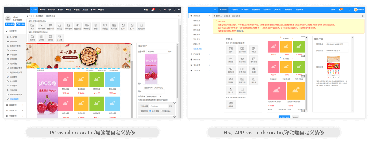可视化装修商城首页及店铺首页,满足不同商家的个性化需求。