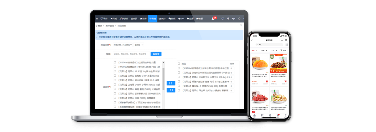 商城管理员设置搜索的关键词,及其相对于搜索触发的展现相对于商品,同时根据需求,还可以设置展示商品的前后排列顺序。