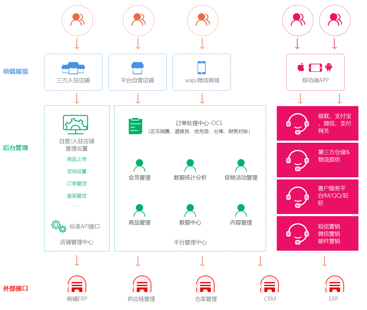 安菲云为大型综合商业体/购物中心,针对多商家、多业态特征点的有关业务提供专业的电商解决方案。